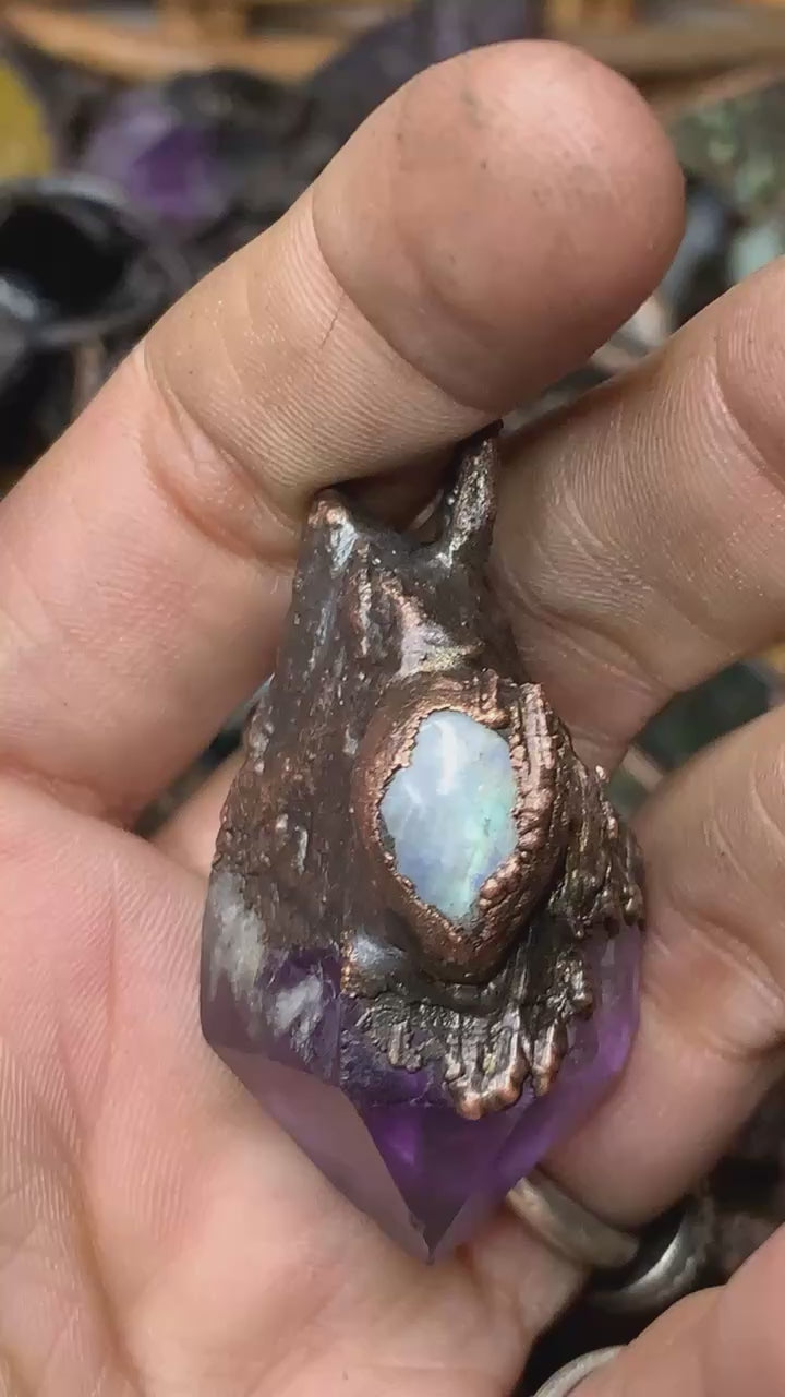 Brazilian Bahia, amethyst and moonstone encased in copper