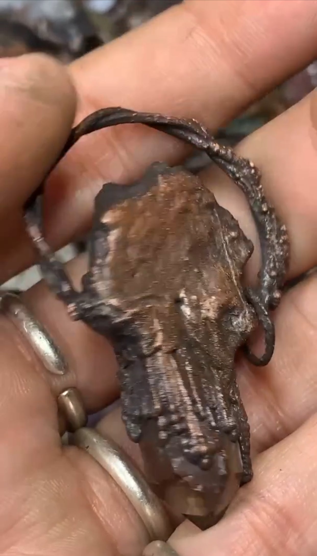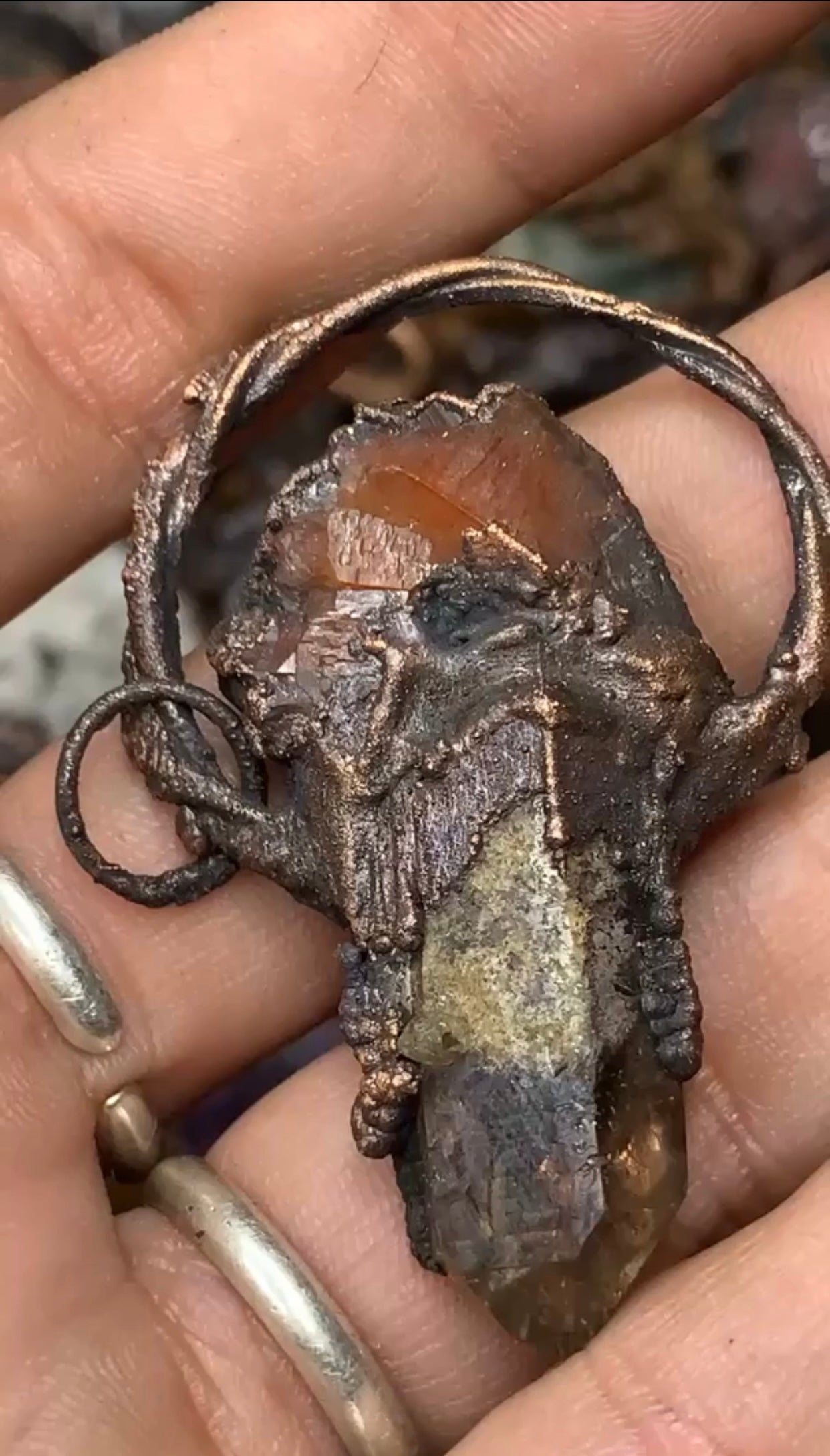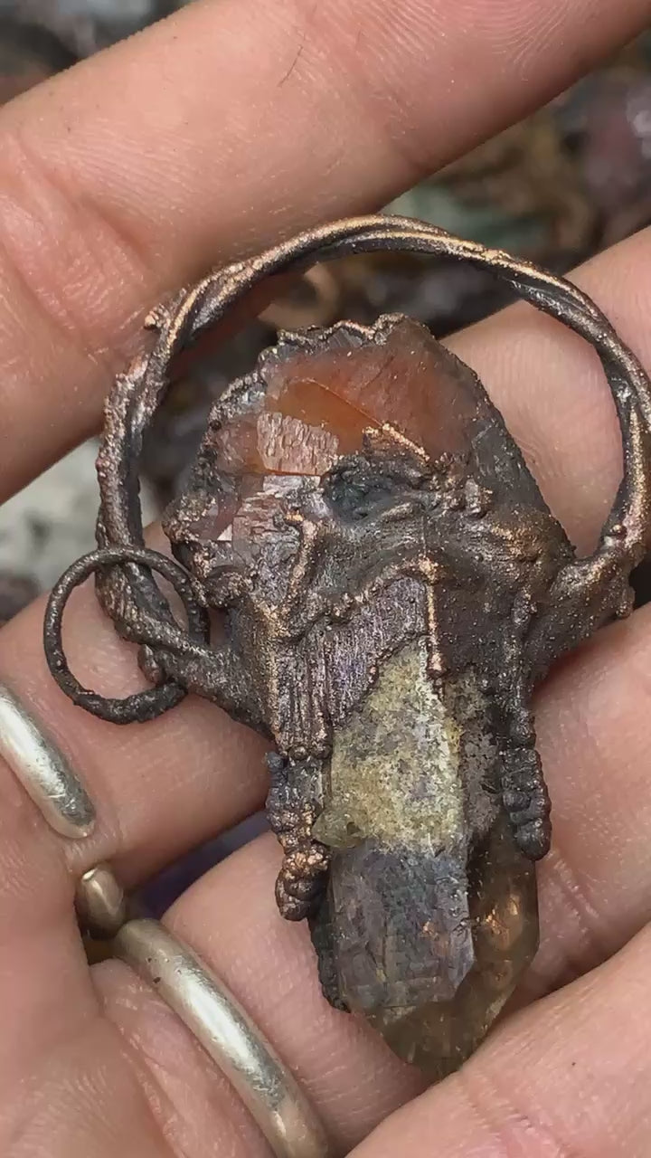 Lodalite and chloride included Smoky quartz from Brazil and Madagascar red quartz encased in copper
