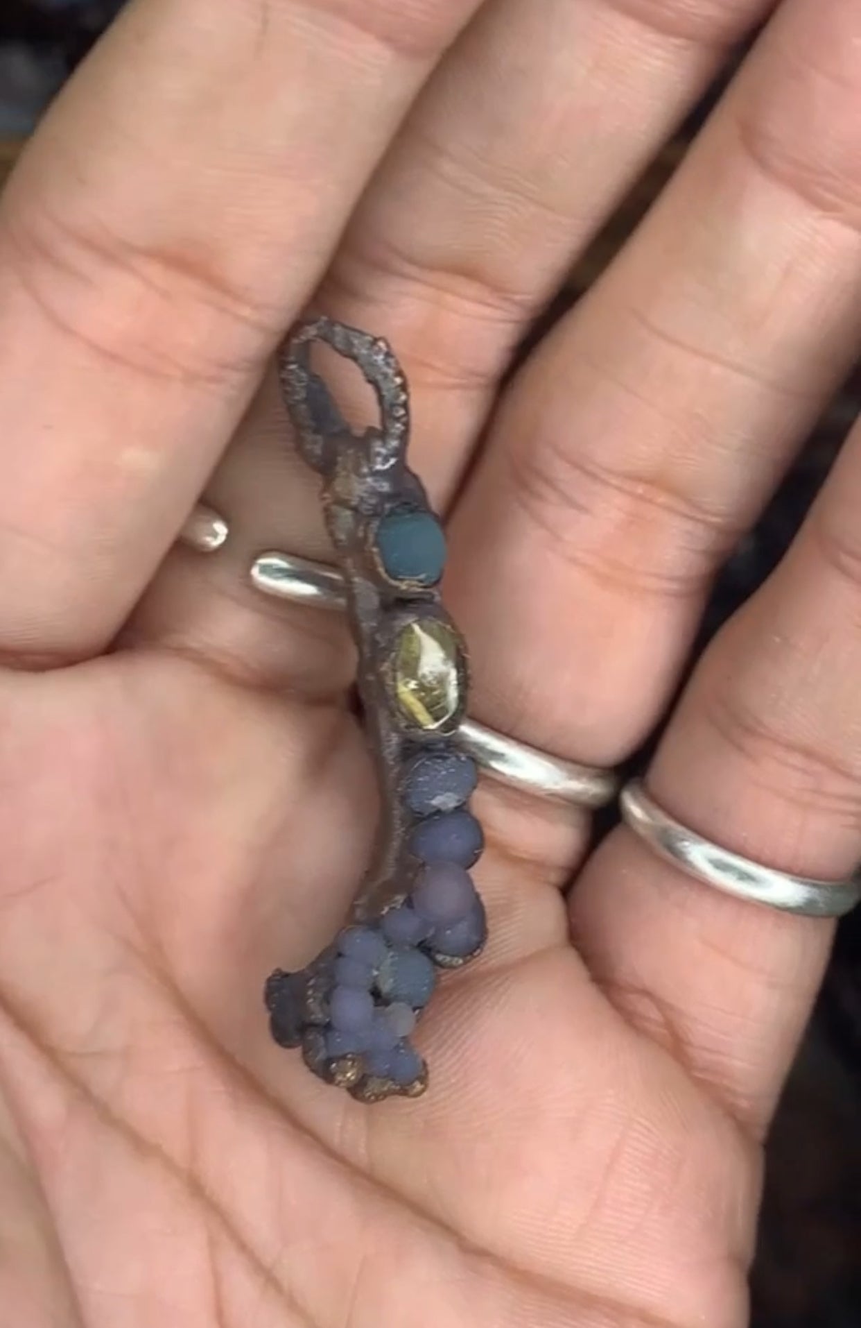 golden rutilated quartz and grape agate encased in copper